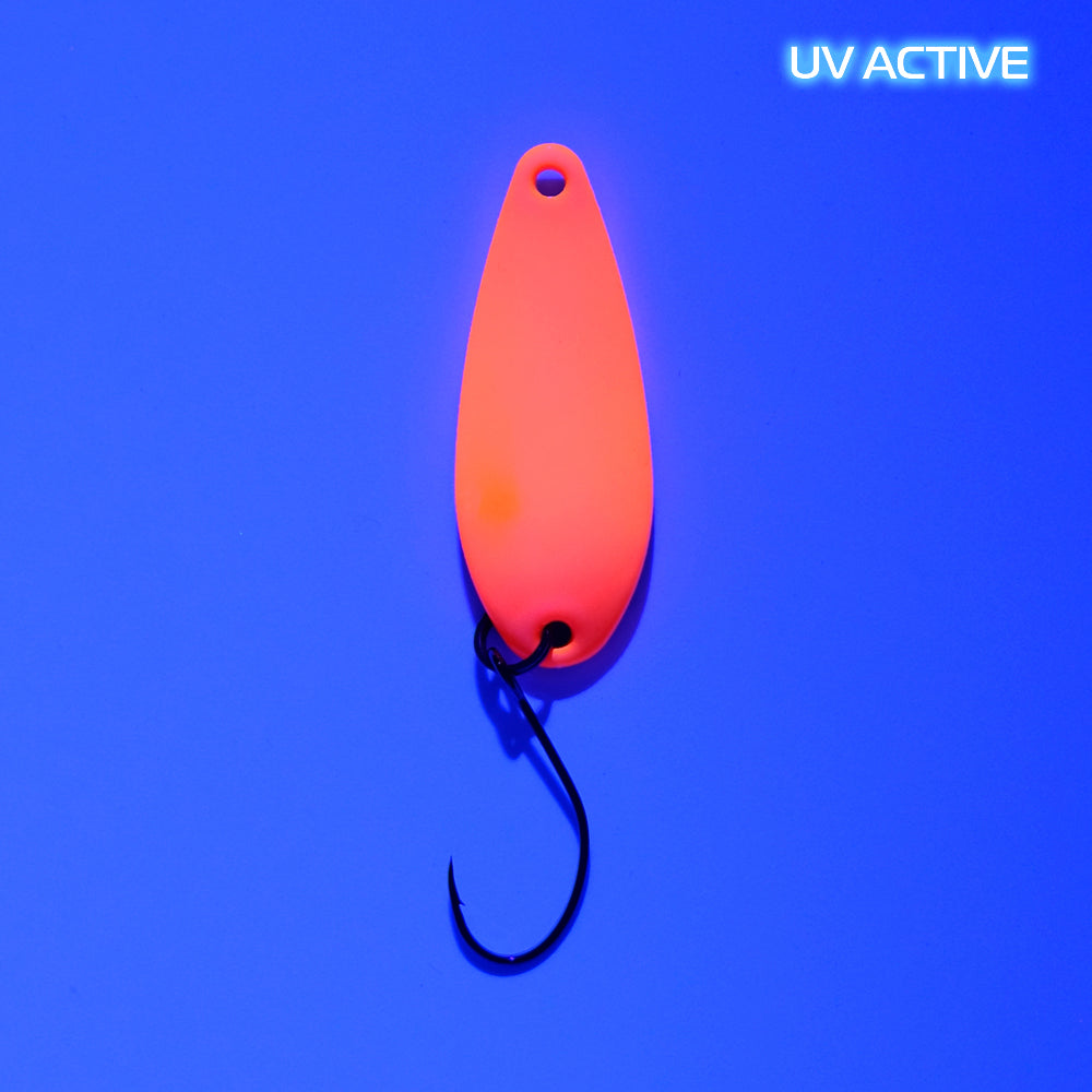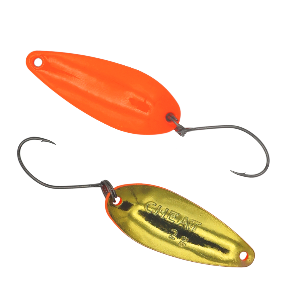 CHEAT 2 g ist ein brandneuer Spoon von FANGENSWERT. Wie der Name dieses äußerst interessanten Spoons schon verrät, wird CHEAT am Wasser sehr oft zu einem universellen Schlüssel, der praktisch alle Türen der Forellenwelt öffnen kann. Denn dieser Spoon kann wirklich alles. Mit seinem Gewicht von 2 g und seiner durchdachten Form lässt sich CHEAT richtig weit auswerfen und kann bei Bedarf in nahezu allen Wassertiefen geführt werden, auch wenn er in erster Linie fürs Mittelwasser konzipiert ist. Als ein ziemlich breitflächiger Spoon entfaltet CHEAT sein schönes Spiel direkt mit der ersten Kurbelumdrehung.