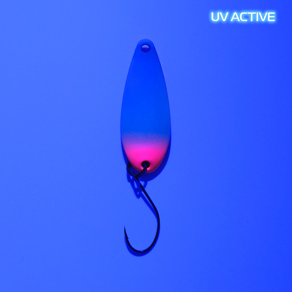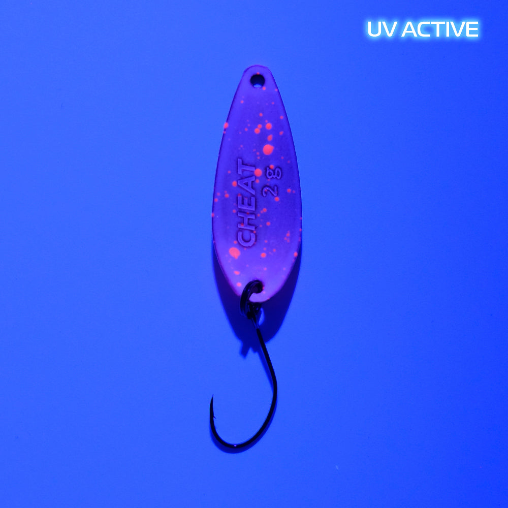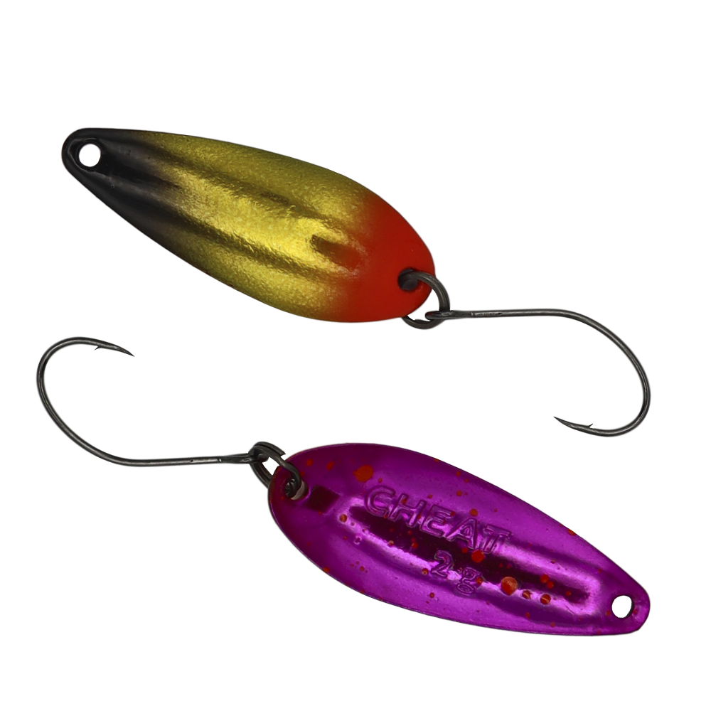 CHEAT 2 g ist ein brandneuer Spoon von FANGENSWERT. Wie der Name dieses äußerst interessanten Spoons schon verrät, wird CHEAT am Wasser sehr oft zu einem universellen Schlüssel, der praktisch alle Türen der Forellenwelt öffnen kann. Denn dieser Spoon kann wirklich alles. Mit seinem Gewicht von 2 g und seiner durchdachten Form lässt sich CHEAT richtig weit auswerfen und kann bei Bedarf in nahezu allen Wassertiefen geführt werden, auch wenn er in erster Linie fürs Mittelwasser konzipiert ist. Als ein ziemlich breitflächiger Spoon entfaltet CHEAT sein schönes Spiel direkt mit der ersten Kurbelumdrehung.