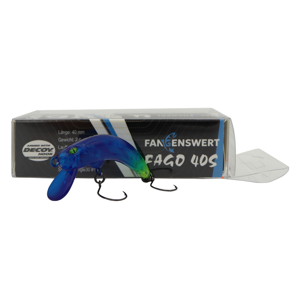 FAGO 40S ist der brandneue Wobbler von FANGENSWERT, einem deutschen Unternehmen, das sich auf den Vertrieb des qualitativ hochwertigen Angelzubehörs spezialisiert. FAGO ist in erster Linie für extrem passive Forellen unter schwierigen Bedingungen, wie z.B. Mittagszeit, Hochsommer, stark beangelte Gewässer etc., konzipiert und zeigt dabei bemerkenswerte Erfolge, auch dann, wenn andere Köder machtlos sind.