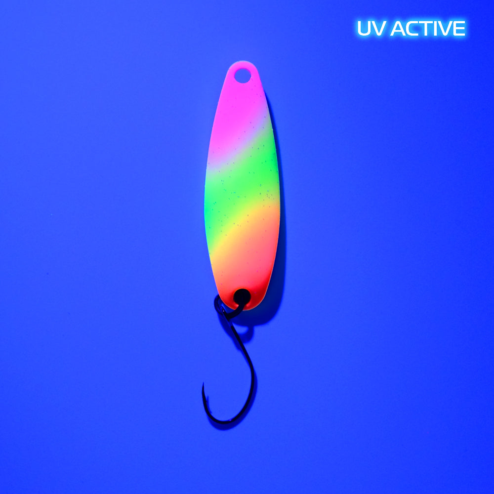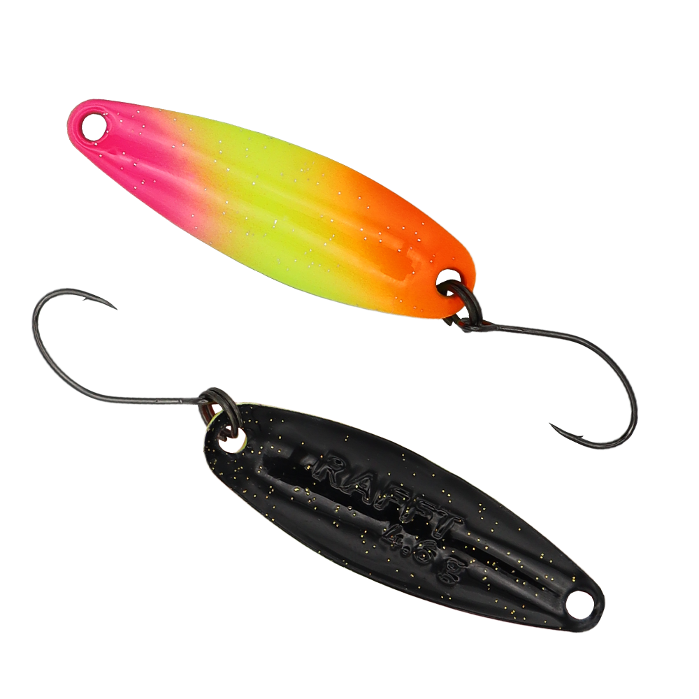 RAFFT 4.6 g ist ein brandneuer Spoon von FANGENSWERT, RAFFT ist der schwerste Spoon in der Serie und somit für weite Würfe und Angeln im Mittelwasser sowie grundnah konzipiert. Durch seinen frequenten Lauf lockt RAFFT die Forellen an und provoziert sie zum Biss. Sehr oft kommen die Attacken auch beim Absinken, denn in dieser Phase hat RAFFT 4.6 g ebenso ein schönes einzigartiges Spiel, das selbst die vorsichtigsten Salmoniden nicht kalt lässt.