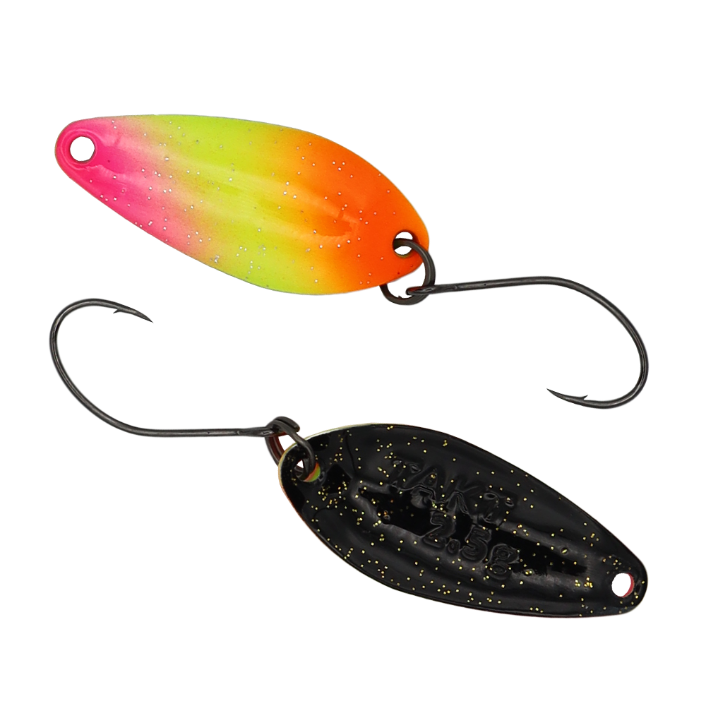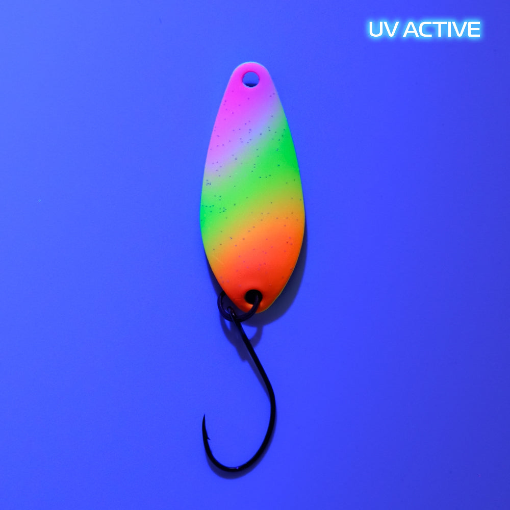 CHEAT 2 g ist ein brandneuer Spoon von FANGENSWERT. Wie der Name dieses äußerst interessanten Spoons schon verrät, wird CHEAT am Wasser sehr oft zu einem universellen Schlüssel, der praktisch alle Türen der Forellenwelt öffnen kann. Denn dieser Spoon kann wirklich alles. Mit seinem Gewicht von 2 g und seiner durchdachten Form lässt sich CHEAT richtig weit auswerfen und kann bei Bedarf in nahezu allen Wassertiefen geführt werden, auch wenn er in erster Linie fürs Mittelwasser konzipiert ist. Als ein ziemlich breitflächiger Spoon entfaltet CHEAT sein schönes Spiel direkt mit der ersten Kurbelumdrehung.