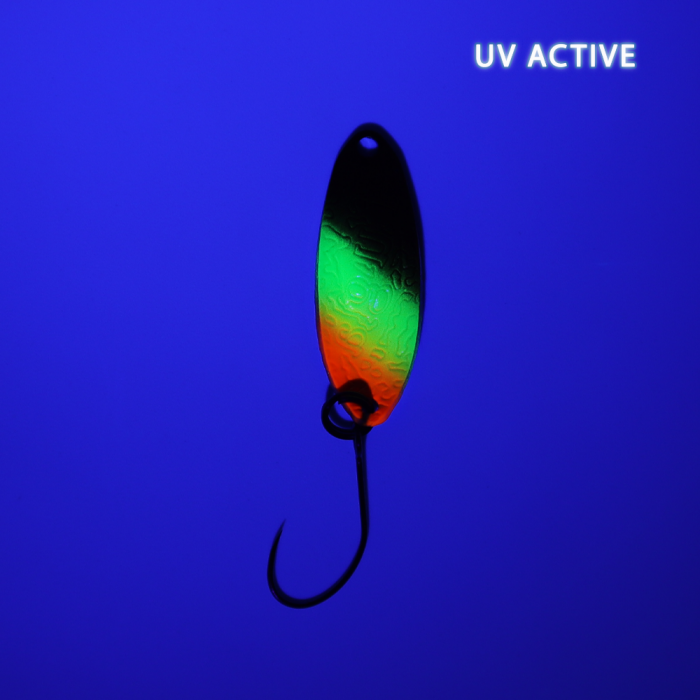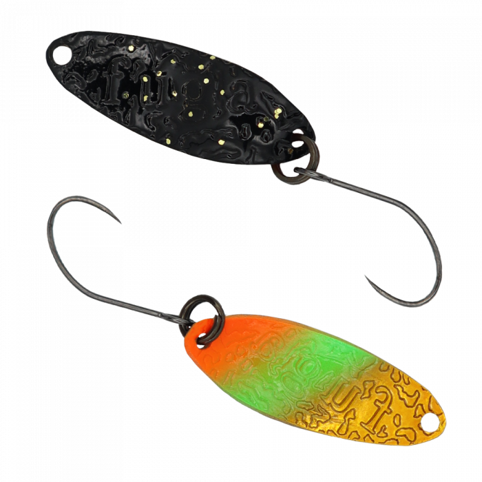 Fuga von GOD HANDS ist ein Spoon, der extra fürs Forellenangeln entwickelt wurde. Das Besondere an diesem Modell sind originelle Gravuren auf beiden Seiten, die bei der Köderführung zusätzliche starke Druckwellen erzeugen und somit passive Fische provozieren. Durch die längliche Form des Spoons werden gute aerodynamische Charakteristiken und daraus folgende bemerkenswerte Wurfweiten erreicht. Den Fuga gibt es bei uns im Shop in 2.2. g – und in vielen exklusiven EM-Farben, die durch ihre UV-Glow-Elemente geprägt sind und dadurch für große Erfolge sorgen.