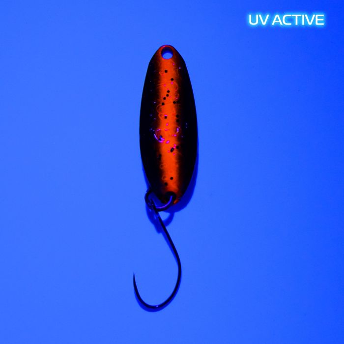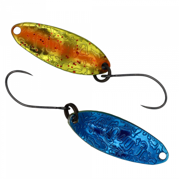 Fuga in 2.2 g ist der schwerere Bruder vom kleinen Fuga 0.8 g und bestens für weite Würfe geeignet. Mit diesem Spoon kann man sehr gut aktive und mittelpassive Fische erreichen, die meistens recht aggressiv auf ihn reagieren: Das zeichnet sich oft durch starke, gut erkennbare Bisse, was jedem Angler eine ganze Menge Spaß bereitet. Aber auch passive Fische können des Öfteren diesem „frechen“ Spoon nicht widerstehen. Beide Brüder ergänzen sich ideal und sorgen für konstante Erfolge am Wasser.