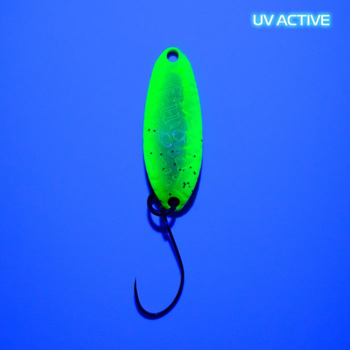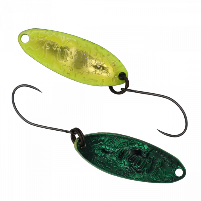 Fuga in 2.2 g ist der schwerere Bruder vom kleinen Fuga 0.8 g und bestens für weite Würfe geeignet. Mit diesem Spoon kann man sehr gut aktive und mittelpassive Fische erreichen, die meistens recht aggressiv auf ihn reagieren: Das zeichnet sich oft durch starke, gut erkennbare Bisse, was jedem Angler eine ganze Menge Spaß bereitet. Aber auch passive Fische können des Öfteren diesem „frechen“ Spoon nicht widerstehen. Beide Brüder ergänzen sich ideal und sorgen für konstante Erfolge am Wasser.