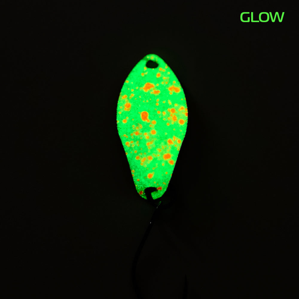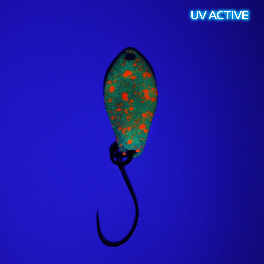 Jriya ist der Klassiker unter den hoch frequenten Spoons. Selbst bei kleinsten Kurbelumdrehungen hat Jriya ein sehr schönes Spiel, das einem ins Wasser gefallenen Insekt verblüffend ähnlich ist. Das provoziert insbesondere passive Fische, die still und kaltblütig im Wasser auf Opfer lauern. Jriya kann dank seiner Form ziemlich weit ausgeworfen werden. Durch das geringe Gewicht arbeitet Jriya ideal beim Absinken. Genau in diesem Moment kommen sehr oft viele Bisse.