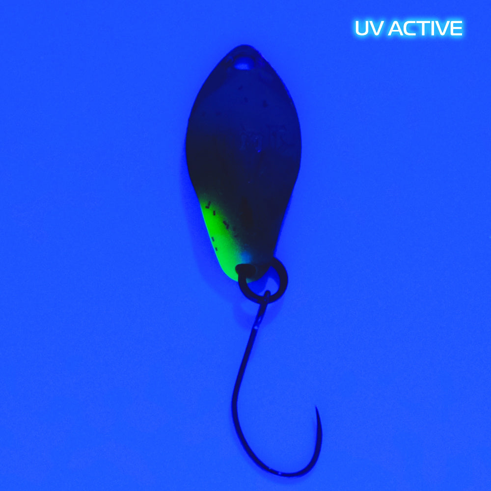Jriya ist der Klassiker unter den hoch frequenten Spoons. Selbst bei kleinsten Kurbelumdrehungen hat Jriya ein sehr schönes Spiel, das einem ins Wasser gefallenen Insekt verblüffend ähnlich ist. Das provoziert insbesondere passive Fische, die still und kaltblütig im Wasser auf Opfer lauern. Jriya kann dank seiner Form ziemlich weit ausgeworfen werden. Durch das geringe Gewicht arbeitet Jriya ideal beim Absinken. Genau in diesem Moment kommen sehr oft viele Bisse.