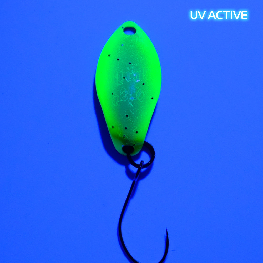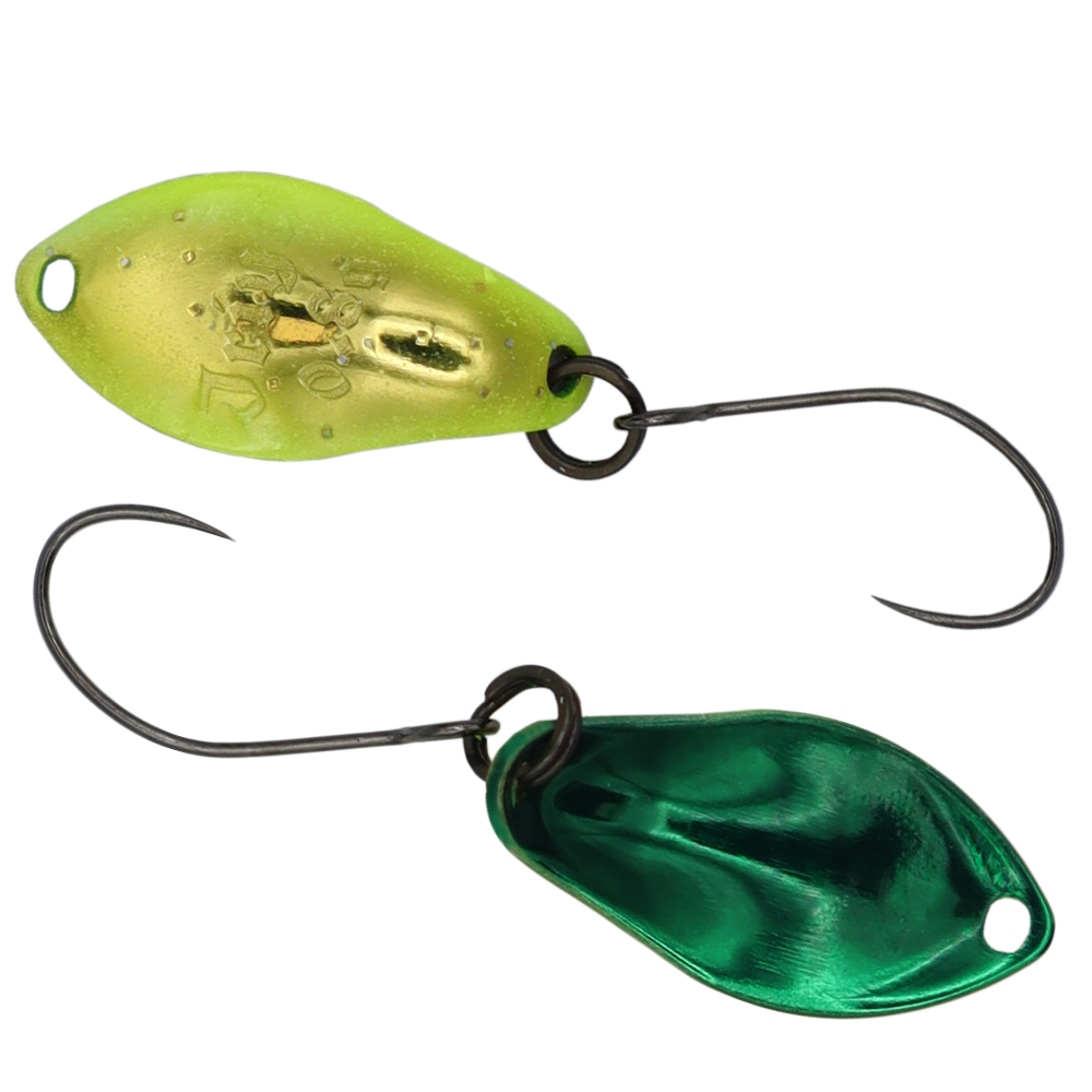 Jriya ist der Klassiker unter den hoch frequenten Spoons. Selbst bei kleinsten Kurbelumdrehungen hat Jriya ein sehr schönes Spiel, das einem ins Wasser gefallenen Insekt verblüffend ähnlich ist. Das provoziert insbesondere passive Fische, die still und kaltblütig im Wasser auf Opfer lauern. Jriya kann dank seiner Form ziemlich weit ausgeworfen werden. Durch das geringe Gewicht arbeitet Jriya ideal beim Absinken. Genau in diesem Moment kommen sehr oft viele Bisse.
