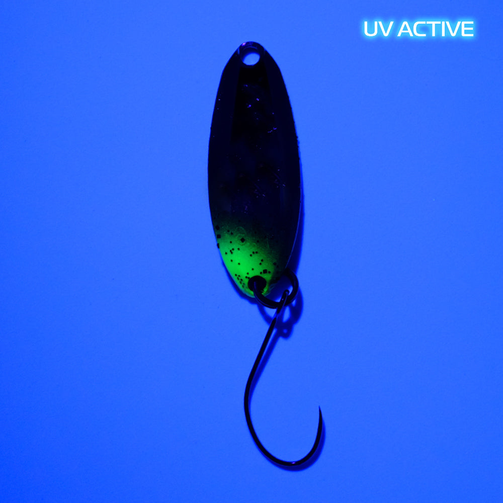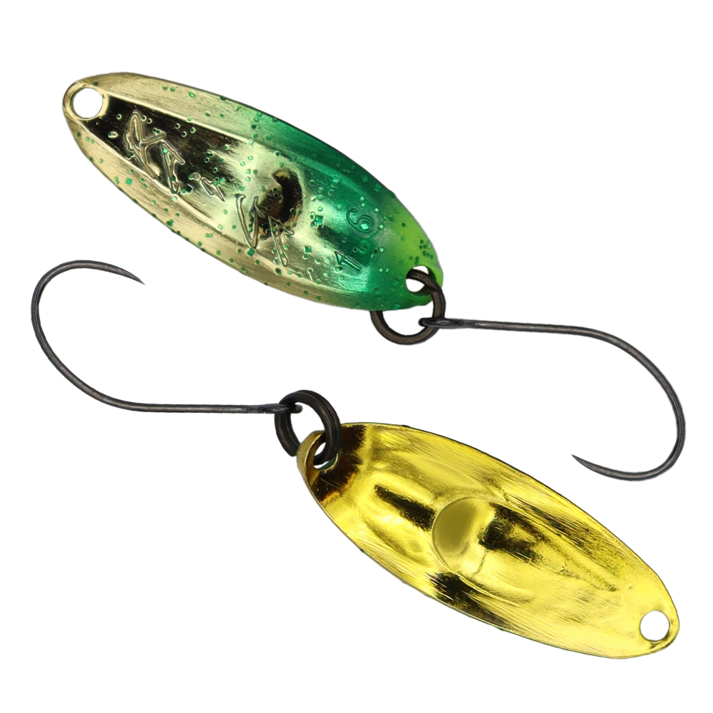 RAiGA von GOD HANDS ist ein gegossener Spoon, der dank seiner komplizierten, in japanischen Laboren entwickelten Form über jegliche Vorstellung hinausgeht. Sein abgeschrägtes Profil verringert den Widerstand bei der Köderführung und lässt RAiGA selbst bei kleinster Geschwindigkeit stabil und hochfrequent laufen. Das provoziert nahezu jeden – insbesondere passiven – Fisch zum Biss. Und das Ganze bei einem Gewicht von 1.6 g und perfekten Flugeigenschaften, so dass man am Wasser bestens für einen erfolgreichen Tag gewappnet ist.