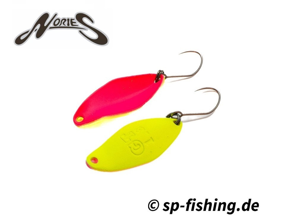 Der Masukuroto Gluttony Forellenblinker von NORIES ist für das schnelle Suchen von aktiven Fischen konzipiert. Die gebogene Form erzeugt starke Druckwellen unter Wasser und hat auch bei hoher Einholgeschwindigkeit einen stabilen Lauf, der aktive Forellen anspricht. Das höhere Gewicht ermöglicht das schnelle Abfischen aller Gewässerbereiche. Der Masukuroto Gluttony Trout Spoon ist mit einem stabilen Einzelhaken ohne Widerhaken ausgestattet und hochwertig lackiert.
