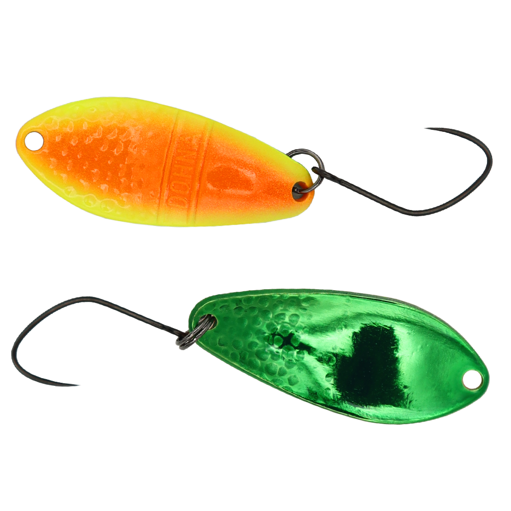 Будь то текущая или стоячая вода, различные весовые категории от 0,8 г до 3,0 г и широкая цветовая гамма делают его подходящим для любой ситуации. Еще одним преимуществом является его асимметричная форма. Лопатка ложки Antem Dohna спереди шире, чем сзади. Такая форма увеличивает водостойкость, что делает игру приманки более живой. Специальная поверхность блесны создает мерцающие стимулы, побуждающие рыбу клюнуть.