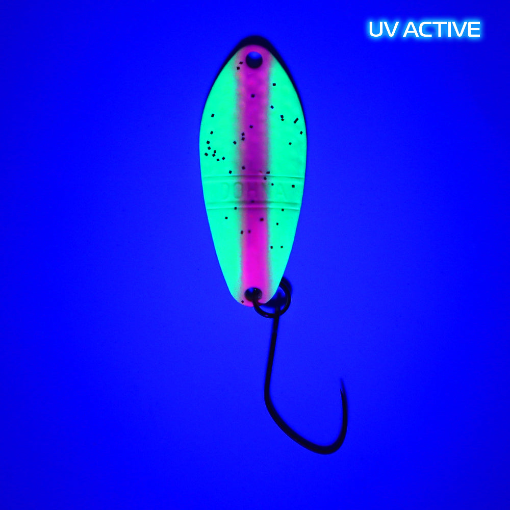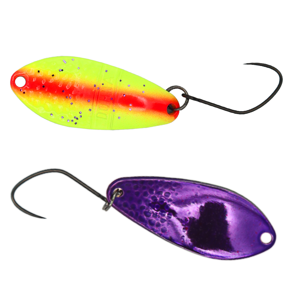 Будь то текущая или стоячая вода, различные весовые категории от 0,8 г до 3,0 г и широкая цветовая гамма делают его подходящим для любой ситуации. Еще одним преимуществом является его асимметричная форма. Лопатка ложки Antem Dohna спереди шире, чем сзади. Такая форма увеличивает водостойкость, что делает игру приманки более живой. Специальная поверхность блесны создает мерцающие стимулы, побуждающие рыбу клюнуть.