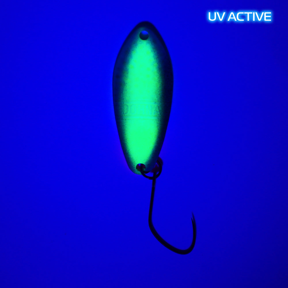 Будь то текущая или стоячая вода, различные весовые категории от 0,8 г до 3,0 г и широкая цветовая гамма делают его подходящим для любой ситуации. Еще одним преимуществом является его асимметричная форма. Лопатка ложки Antem Dohna спереди шире, чем сзади. Такая форма увеличивает водостойкость, что делает игру приманки более живой. Специальная поверхность блесны создает мерцающие стимулы, побуждающие рыбу клюнуть.