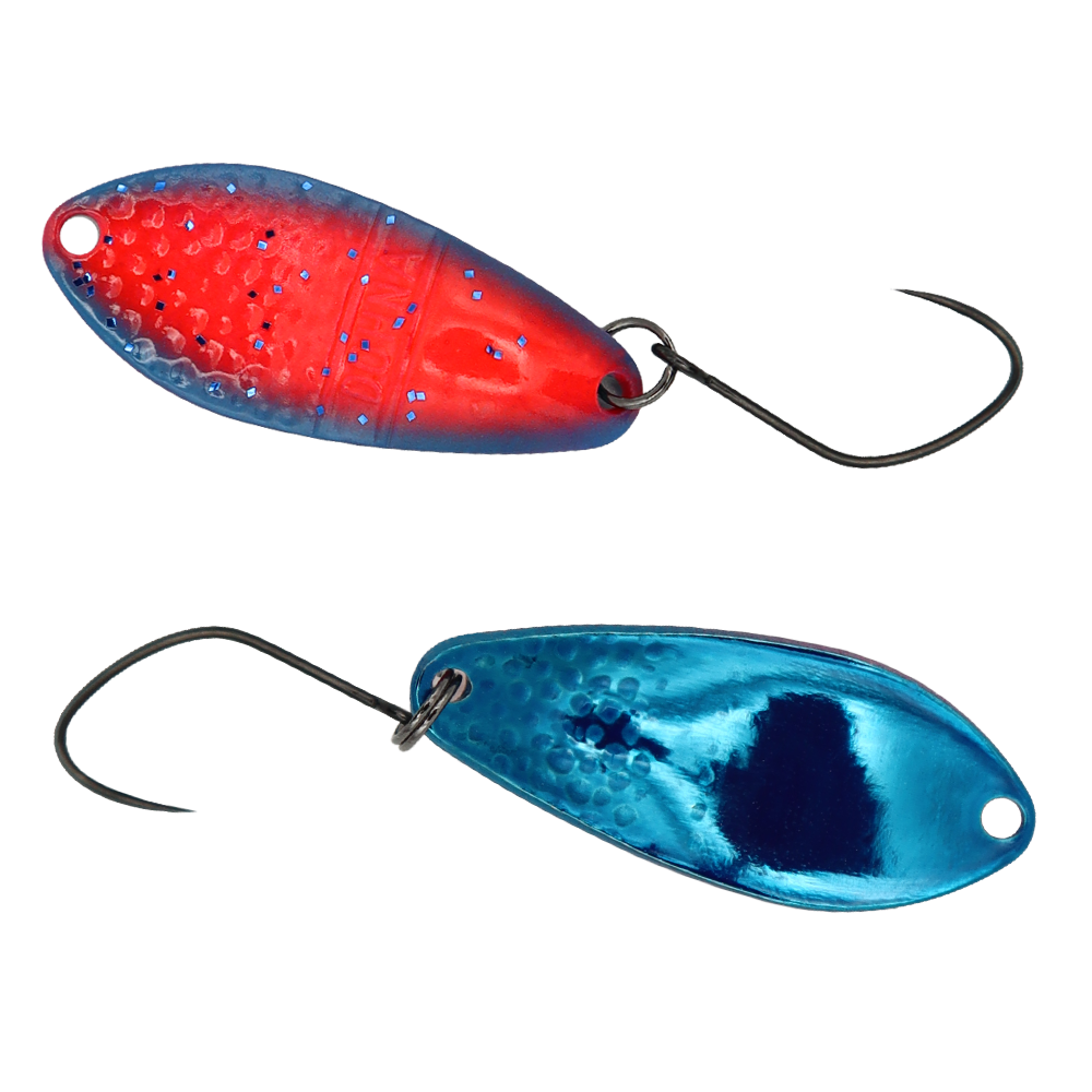 Будь то текущая или стоячая вода, различные весовые категории от 0,8 г до 3,0 г и широкая цветовая гамма делают его подходящим для любой ситуации. Еще одним преимуществом является его асимметричная форма. Лопатка ложки Antem Dohna спереди шире, чем сзади. Такая форма увеличивает водостойкость, что делает игру приманки более живой. Специальная поверхность блесны создает мерцающие стимулы, побуждающие рыбу клюнуть.