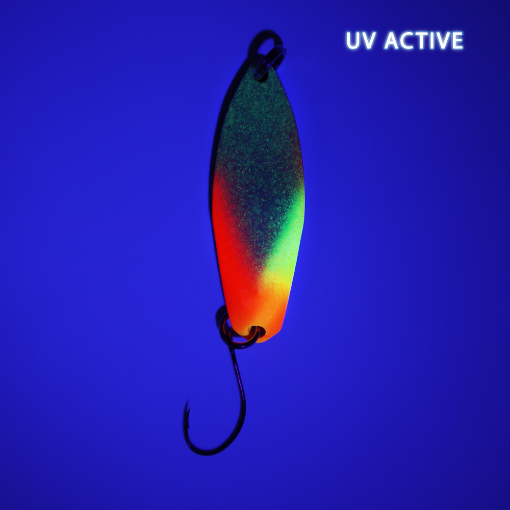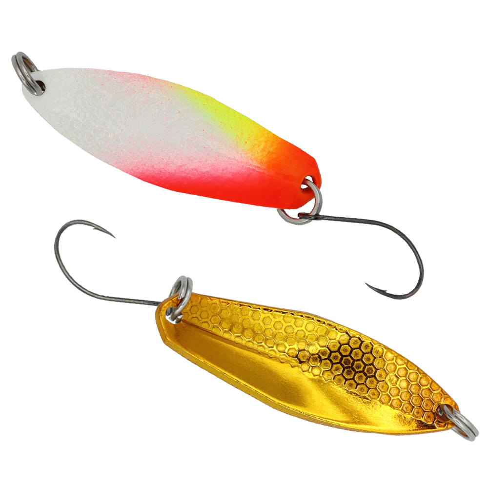 ГАиА от 4,8 г до 7,7 г от GOD HANDS — ложка, которая может вдохновить каждого своей формой. Длинный и широкий одновременно, с центральным «изломом», который плавно заканчивается Y-образным изгибом. Одна половина ложки имеет несколько шестиугольных насечек, которые при движении создают уникальный мерцающий эффект. В сочетании с очень частым течением GAiA не оставляет равнодушной даже самую упрямую форель.