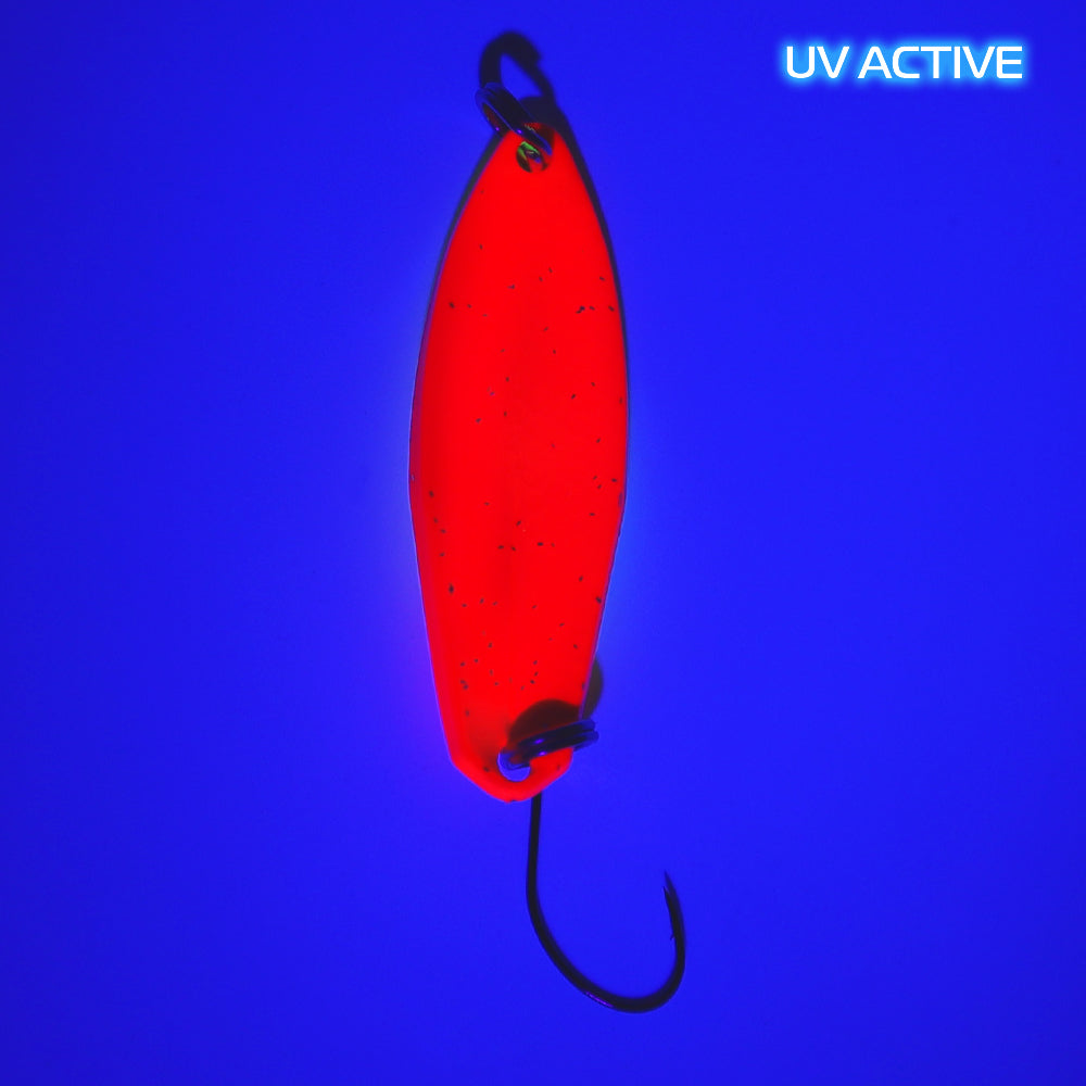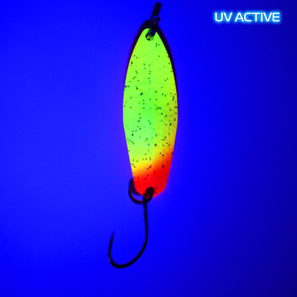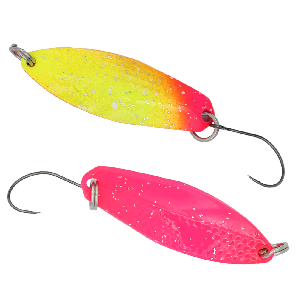 ГАиА от 4,8 г до 7,7 г от GOD HANDS — ложка, которая может вдохновить каждого своей формой. Длинный и широкий одновременно, с центральным «изломом», который плавно заканчивается Y-образным изгибом. Одна половина ложки имеет несколько шестиугольных насечек, которые при движении создают уникальный мерцающий эффект. В сочетании с очень частым течением GAiA не оставляет равнодушной даже самую упрямую форель.